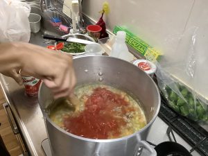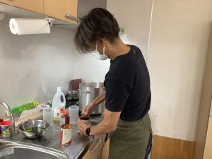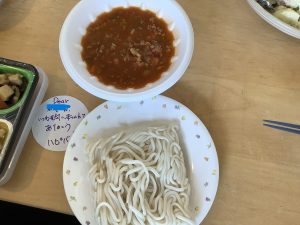 一人一人にメッセージを添えて、ソフト麵にミートソース、ポテトサラダ、おにぎりとお腹いっぱいになってもらいました。