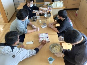 当日は朝早くからクッキー作りが始まりました。ワイワイガヤガヤの男性らしいクッキングです(笑)